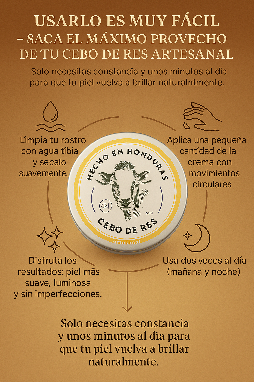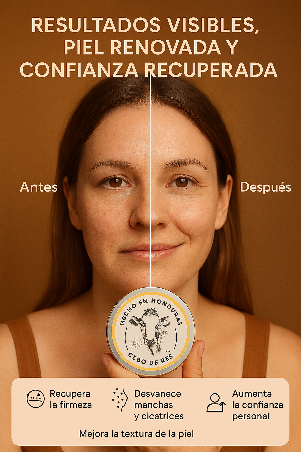 “Tenía la piel seca y con arruguitas finas. Después de usar el Cebo de Res artesanal por 15 días, mi cara luce más firme y con un brillo natural. Mi esposo me lo notó enseguida 😍.”